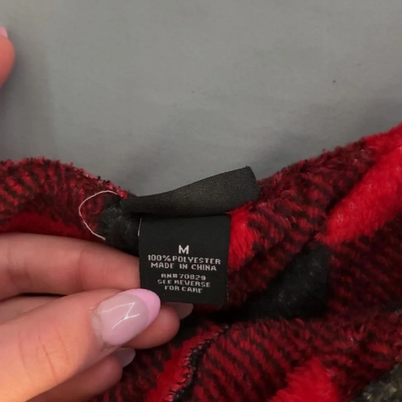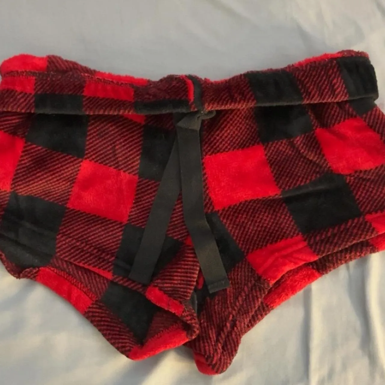 Red/black plaid fleece shorts with bow detail Size M #loungewear #cozy