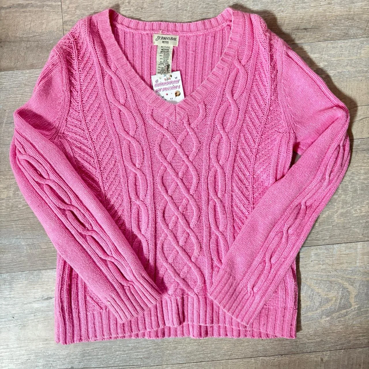 St. John’s Bay pink cable knit sweater Size M #knitwear #cableknit