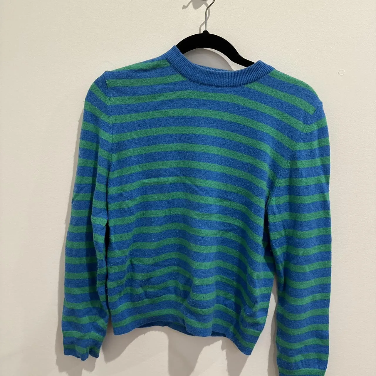 zara blue and green striped sweater wool blend