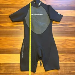 The Body Glove Women’s Pro 3 Black & Gray Shorty Spring Wetsuit is a medium-sized wetsuit designed for water sports. Size medium/large