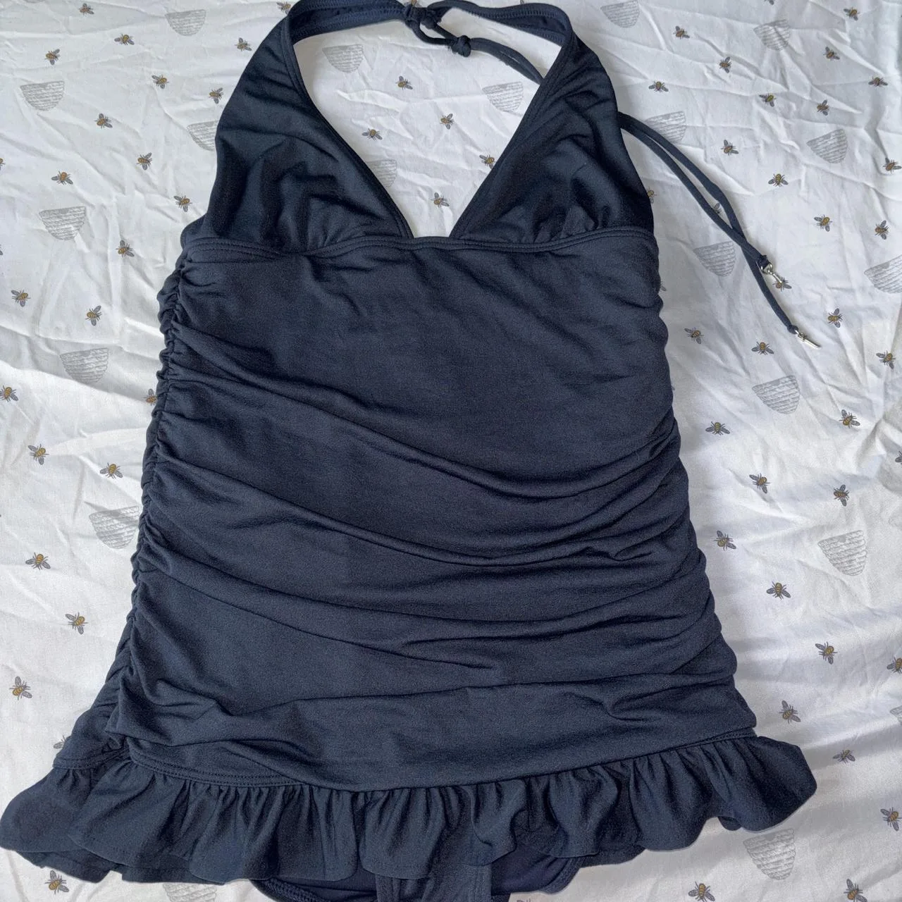 dark navy blue juicy couture halter top one piece swim suit