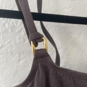 Brown and gold shimmer one piece swimsuit with straps and cut out detail #swimwear