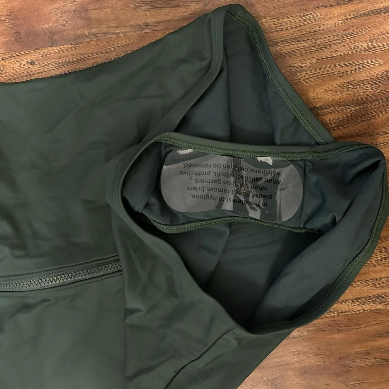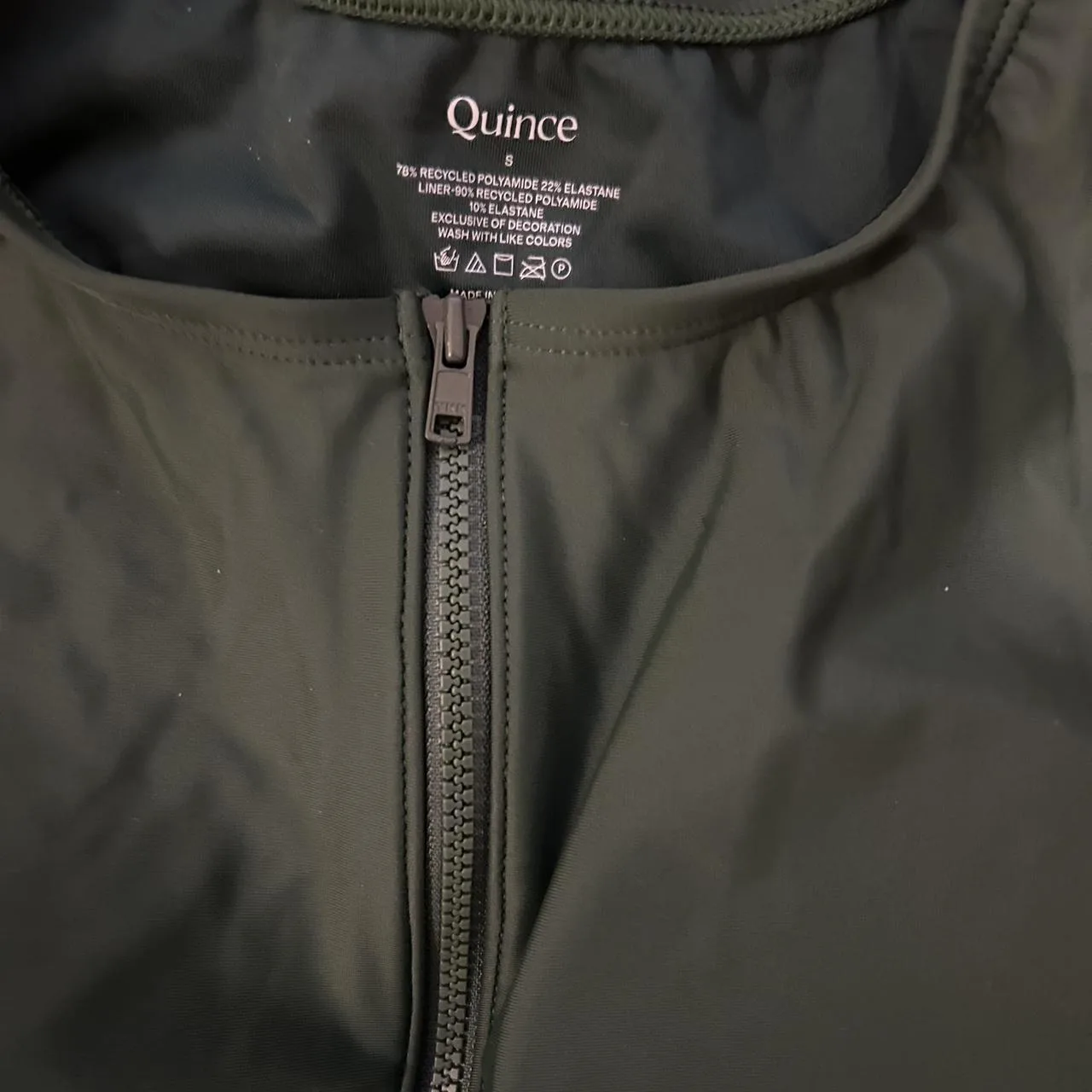 NWT Quince Italian zip-front one-piece swimsuit in a green color size small NWT #swimwear #onepiece