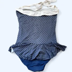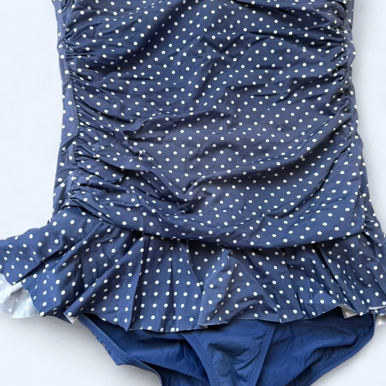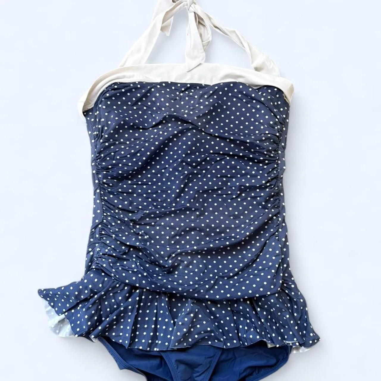 Navy blue polka dot one piece swimsuit. Ralph Lauren. Size 12. #swimwear #polkadot #summer