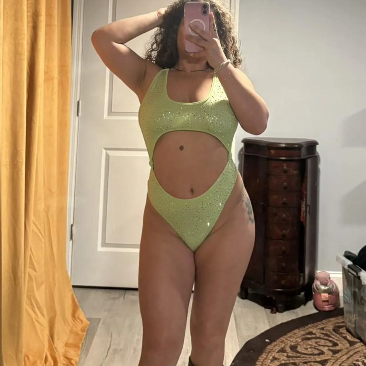 Green sequin one piece swimsuit