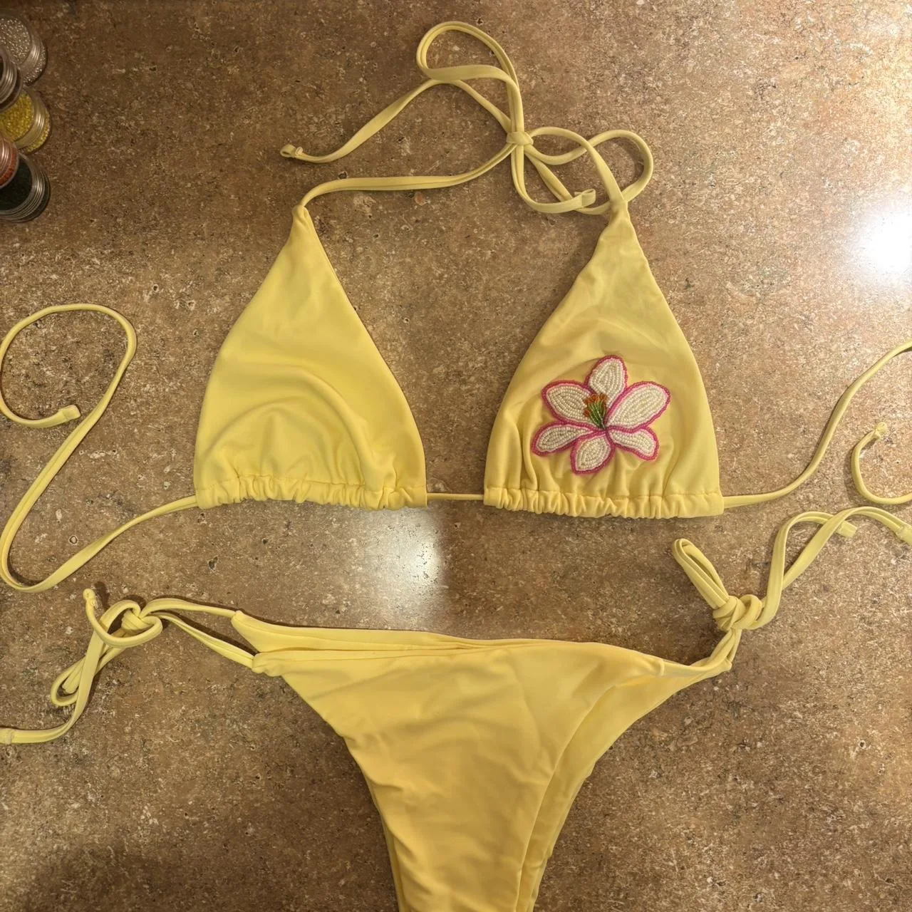 Hand made bead embroidered swim suit. Size medium.
