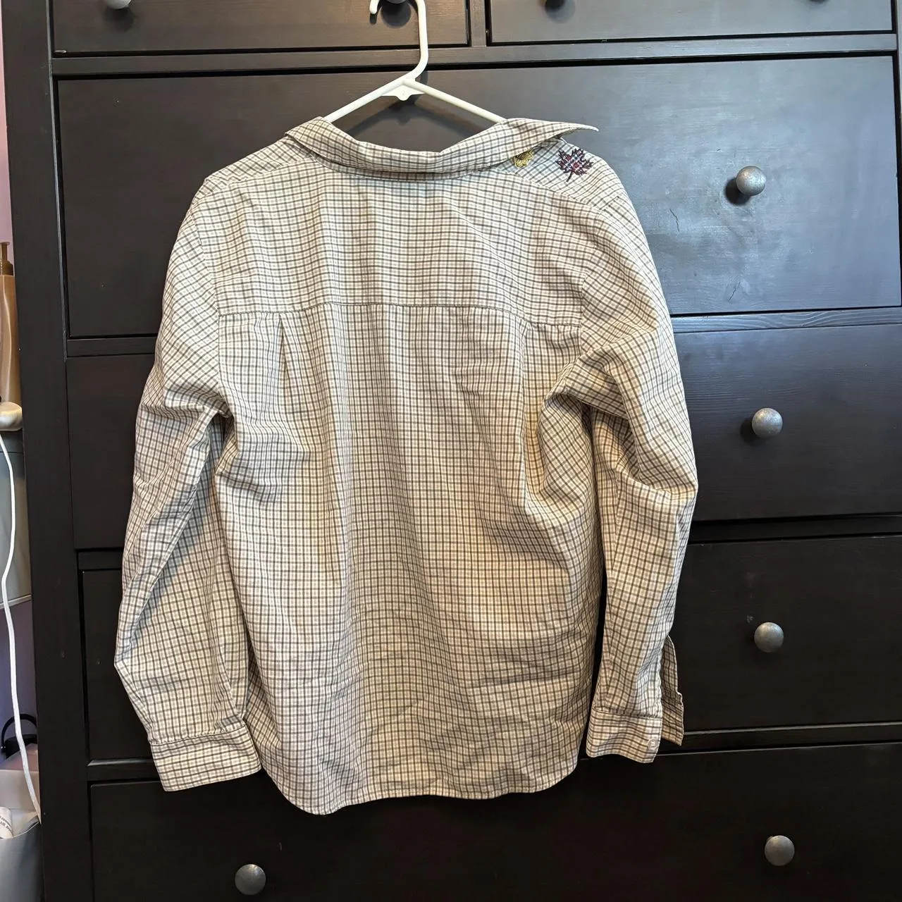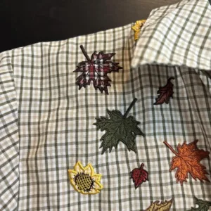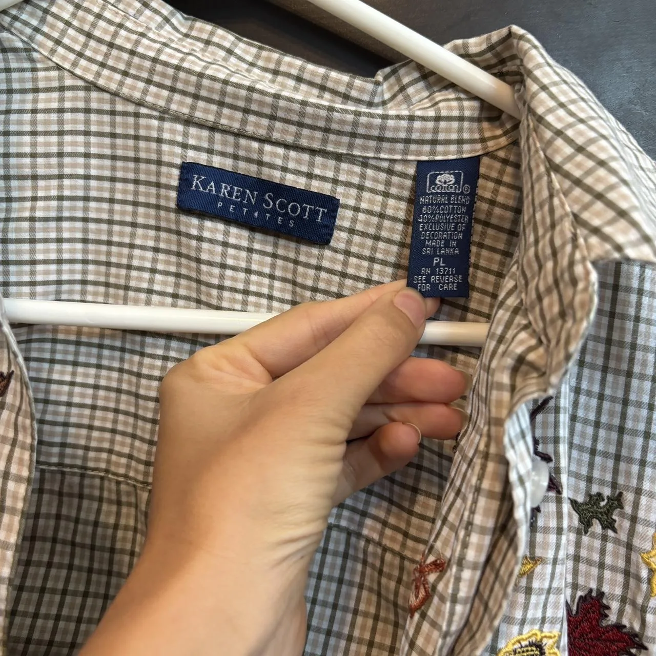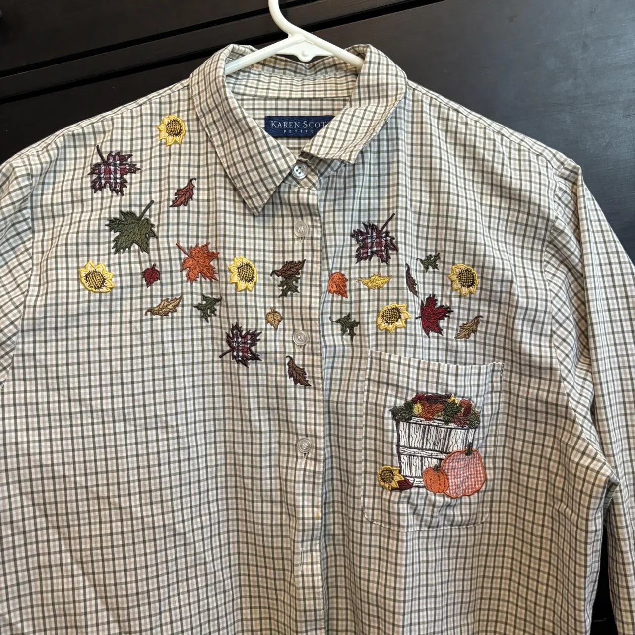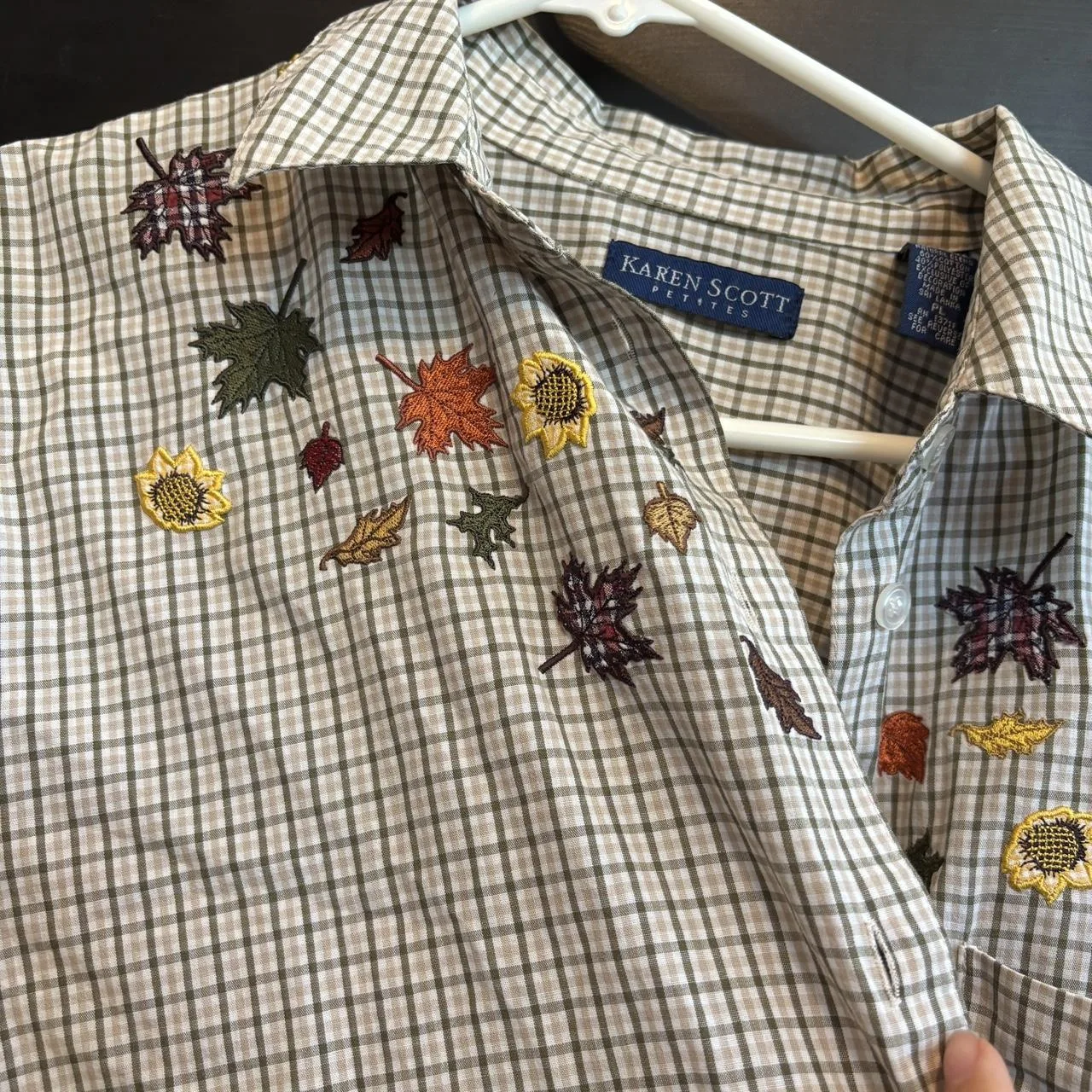 so darling vintage karen scott petite large (more like a medium) 60% cotton embroidered fall button up