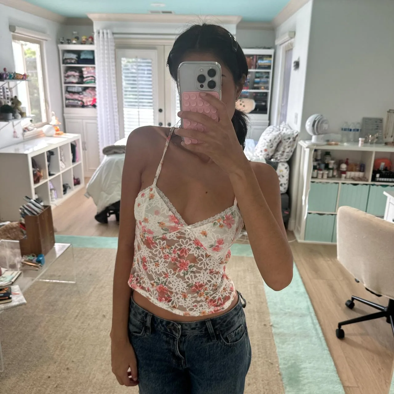 floral lace, delicate top, romantic blouse, feminine, embroidered, sheer, dainty, boho chic, vintage-inspired, summer style