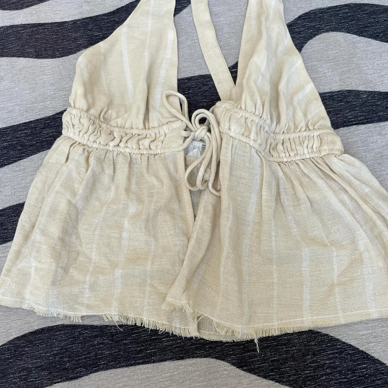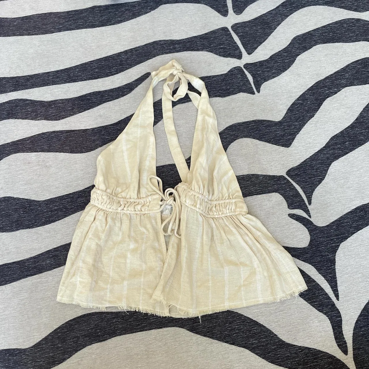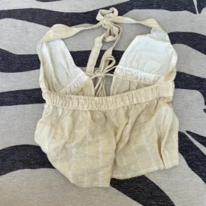 Cream and white halter top with tie-up urban outfitters fray hem