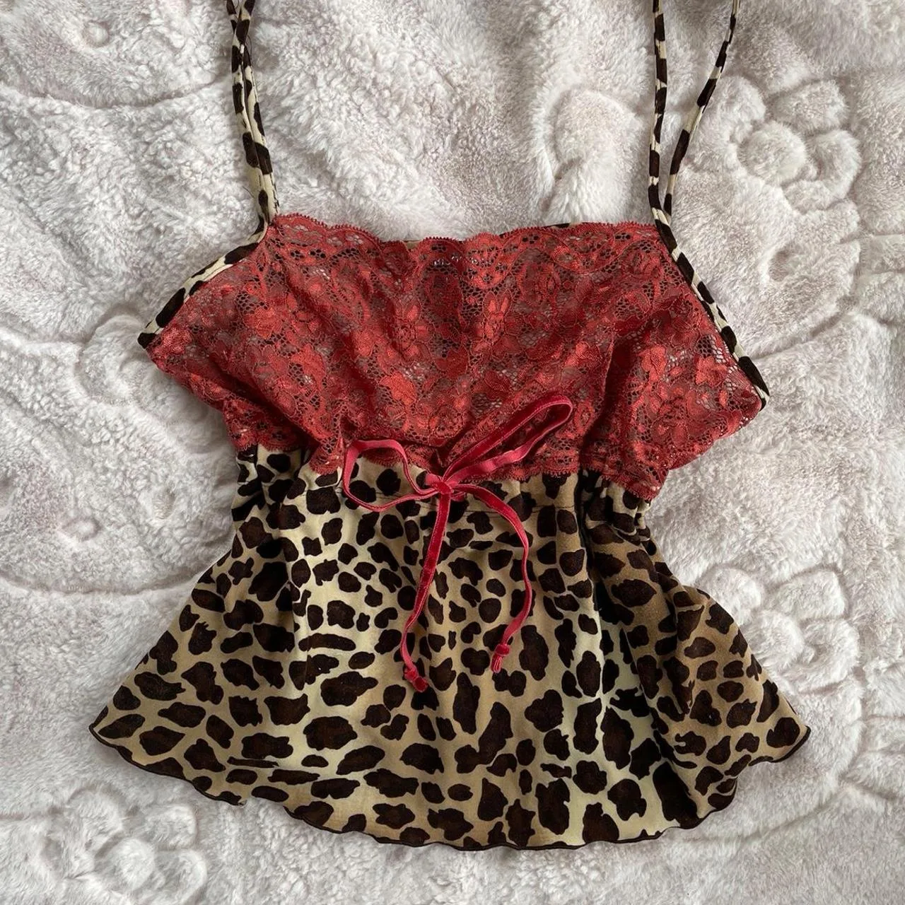 Red and brown lace and leopard print intimates wear cami with adjustable straps #glamour #y2k #lingerie #y2kstyle #chic