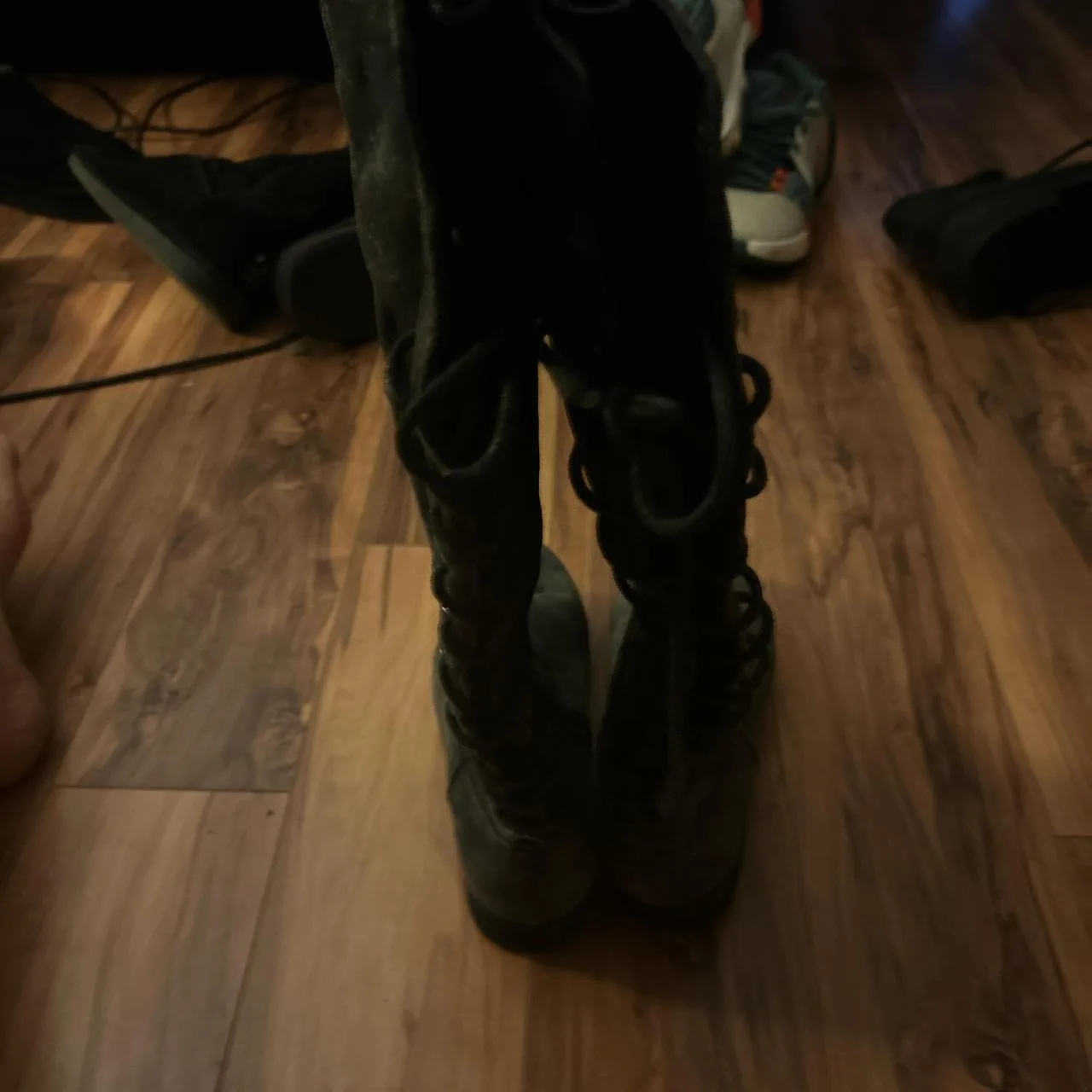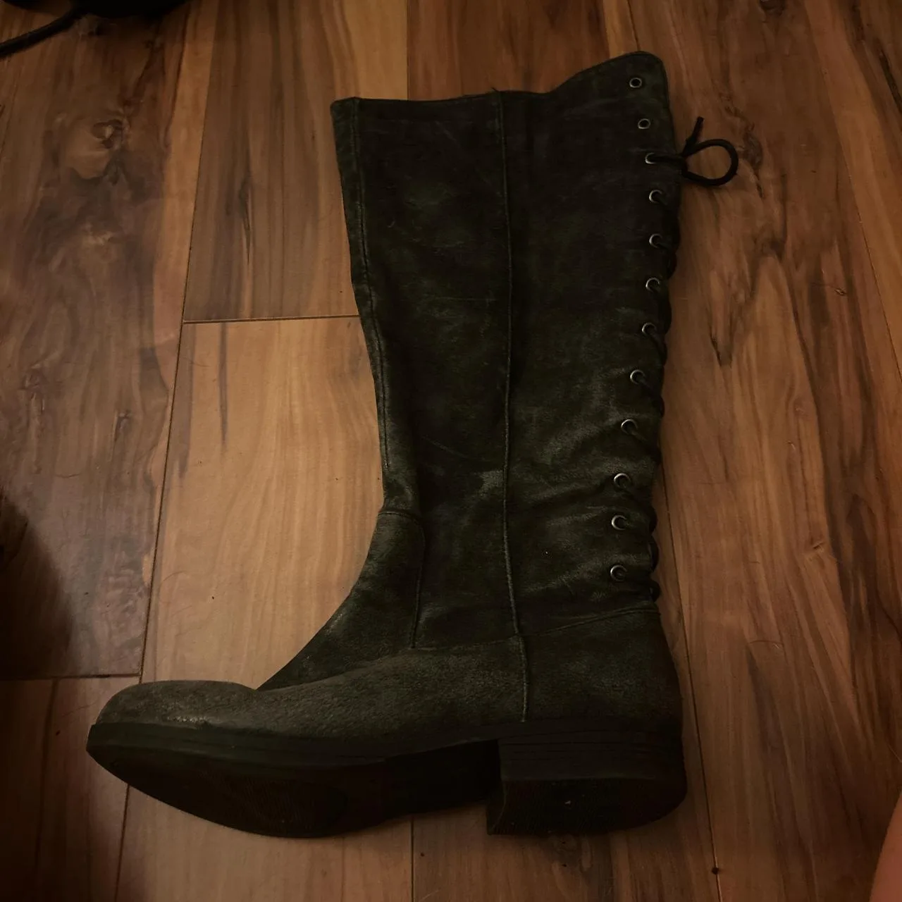 black suede, knee-high, lace-up, wide calf, tall boots, chunky sole, heeled, textured suede, versatile, vintage-inspired