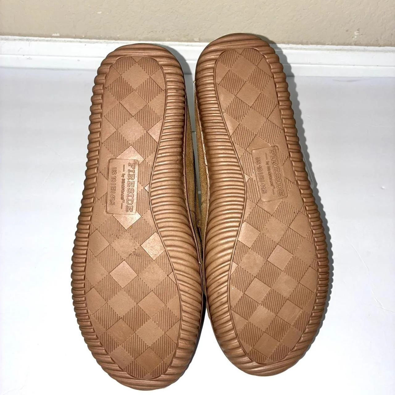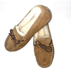 Fireside Cozy Moccasins They feature a genuine cow suede upper and are lined with cozy classic memory foam insoles keeping feet comfortable and dry. Durable indoor/outdoor outsoles, they provide support and allow for wear both inside the house and for quick errands outdoor.