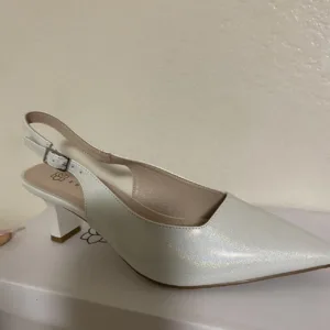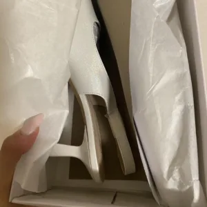 glittery white, heeled sandals, pointed toe, slingback, party shoes, elegant, faux leather, evening footwear, formal wear, glamour