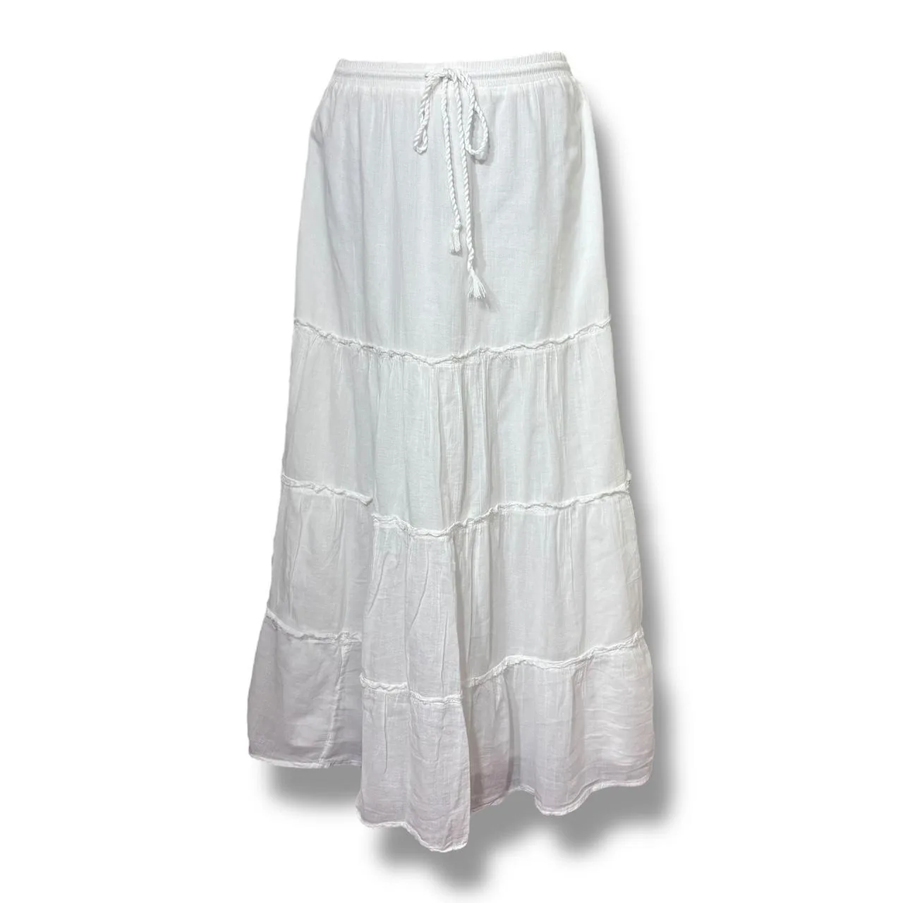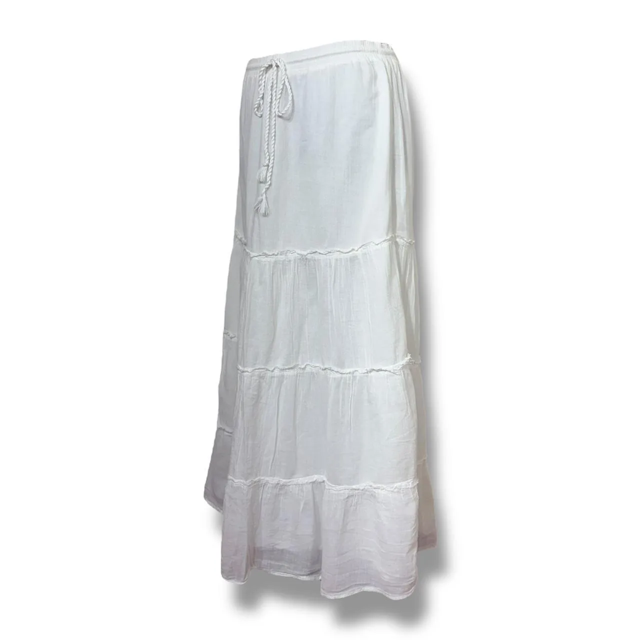 Mudd White Tiered Maxi Skirt with Drawstring Waist